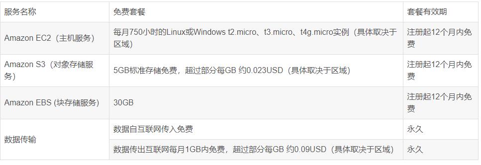 由于亞馬遜云科技服務(wù)種類較多,且計費詳細(xì),很多用戶有些看不懂,所以對使用亞馬遜云望而卻步。其實亞馬遜云科技很多服務(wù)都有免費套餐,以讓用戶體驗,這些服務(wù)的免費套餐,搭建一個私人網(wǎng)盤綽綽有余。由于亞馬遜云海外區(qū)僅需個人信用卡就可以注冊,所以我們以海外區(qū)為例。我們可以從以下鏈接亞馬遜AWS海外區(qū)域賬戶免費套餐_免費云服務(wù)-AWS云服務(wù) 看到亞馬遜云哪些服務(wù)具備免費套餐: